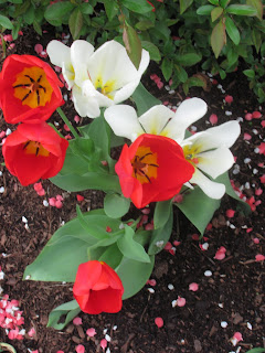 The truth is... when I settled in last night I started watching a movie, Finding Forrester, which is very good by the way.. worth watching, probably more than once... I then took some time to check and write some email... and then Meg called. I knew she may be headed this way today and that we may try to get together. She had some errands to run and she was bringing Gracie puppy with her... We ended up meeting and went for a short walk, in a place where Gracie could be off leash... which she loved... and it was nice to get a chance to visit. Later I sat here and decided I wanted to go on a hunt for tulips... There is a place, not too far from where I live, that has an annual display of beautiful tulips... I have yet to hit is at the right time, there they are all at their best... but I am pleased with the pictures I took today... Here are a few for you to see... (not all tulips, of course... but all taken in and around my neighborhood. I love the colors!)